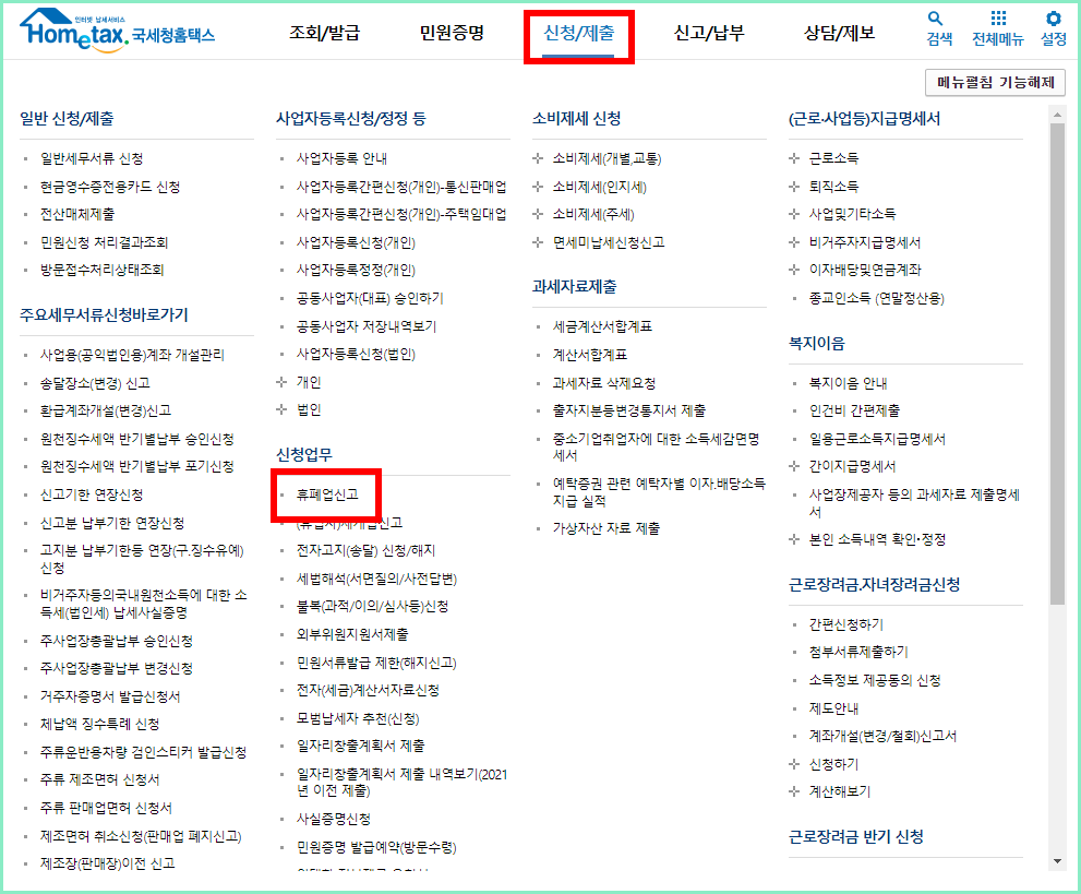 홈택스를 이용한 폐업신고 절차