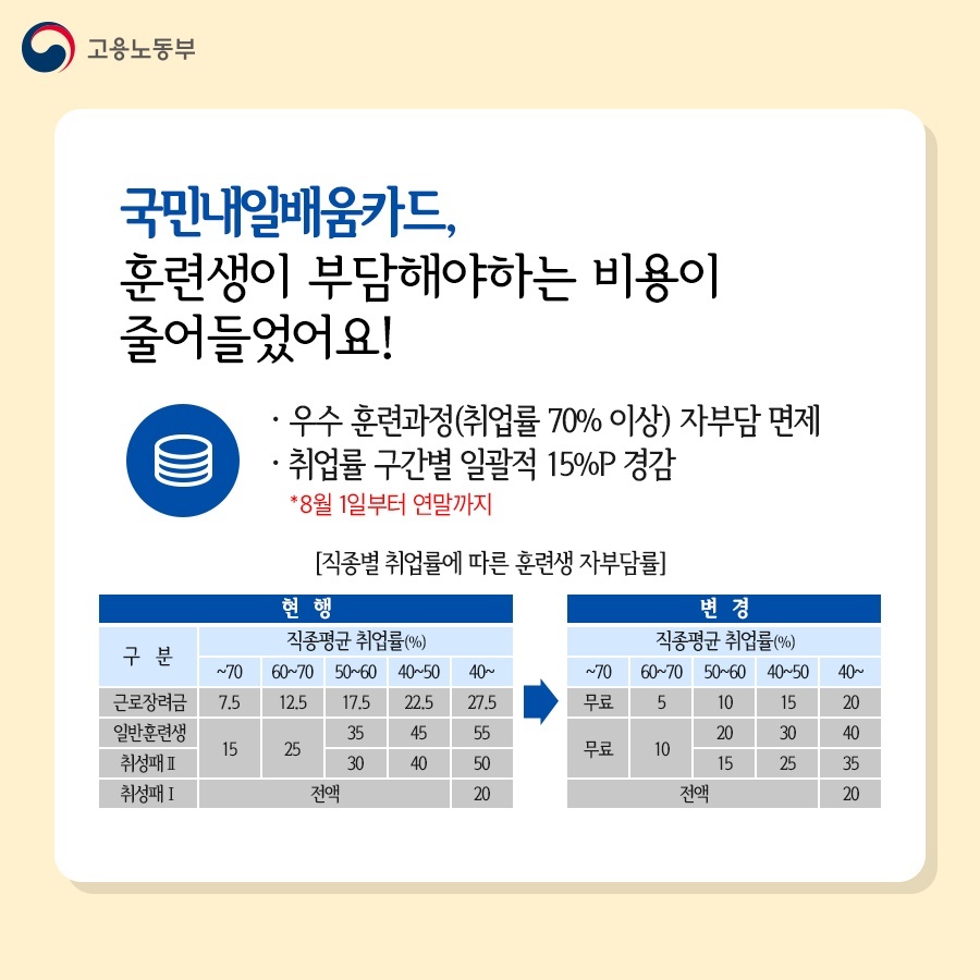 국민 내일배움카드 훈련비 지원금