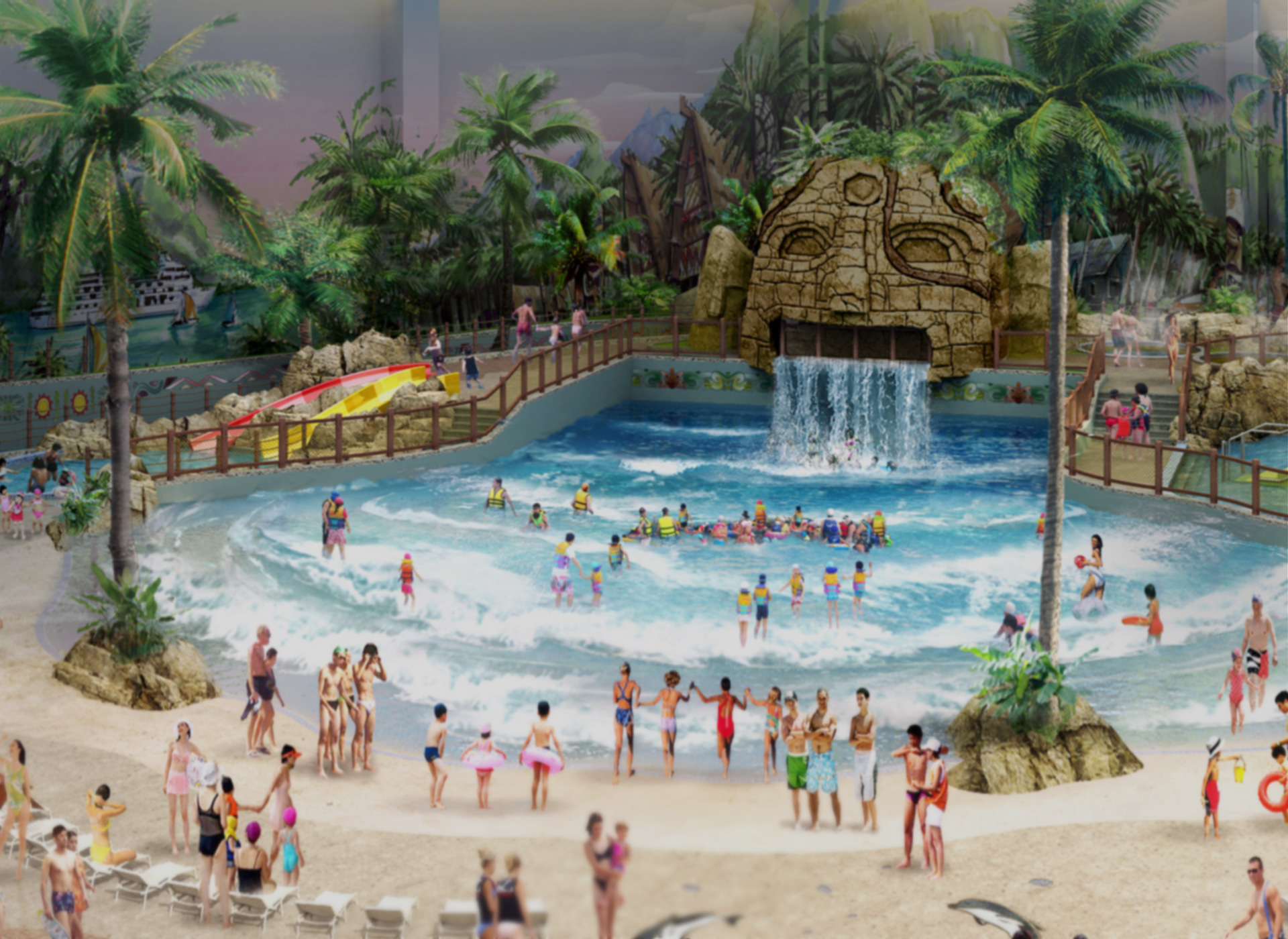 - 웨이브풀: 인공 파도를 일으켜 바다에서 수영하는 듯한 느낌을 제공하며, 다양한 크기의 파도로 즐거움을 줍니다. 위치: 워터파크 중앙부. 웨이브풀은 다양한 크기의 파도를 제공하여 수영 실력에 관계없이 누구나 즐길 수 있습니다. 파도의 크기와 주기가 일정하지 않아 더욱 현실감 있는 바다 경험을 제공합니다.