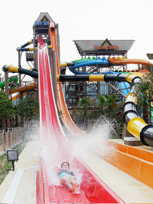 - 친구들과 경주할 수 있는 슬라이드로, 여러 개의 슬라이드가 나란히 놓여 있어 경주를 즐길 수 있습니다. 위치: 워터파크 서쪽 구역. 레이싱 슬라이드는 친구나 가족과 함께 즐길 수 있는 경쟁적인 요소가 추가된 슬라이드입니다. 여러 개의 슬라이드가 나란히 놓여 있어 동시에 출발하여 경주를 즐길 수 있습니다.