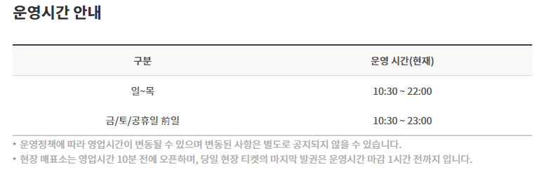 • 생일자 할인: 생일 당일 방문 시 티켓 가격이 50% 할인됩니다. 신분증을 제시해야 합니다.