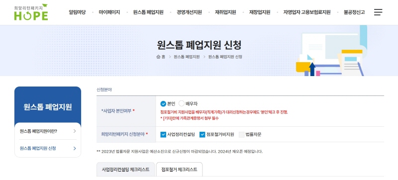 - 이미 점포철거비 지원을 받은 경우 중복 신청이 불가능합니다.