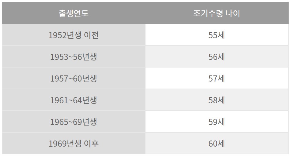 조기수령 가능 연령 세부 기준
