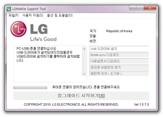 - 설치가 완료되면 LG 스마트폰을 USB 케이블로 PC에 연결해 정상 작동하는지 확인합니다.