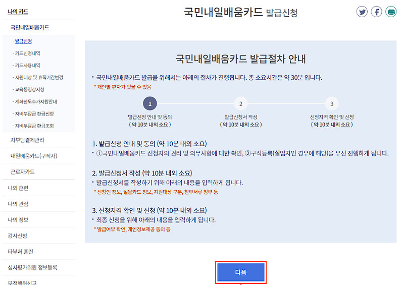 국민 내일배움카드 발급 절차