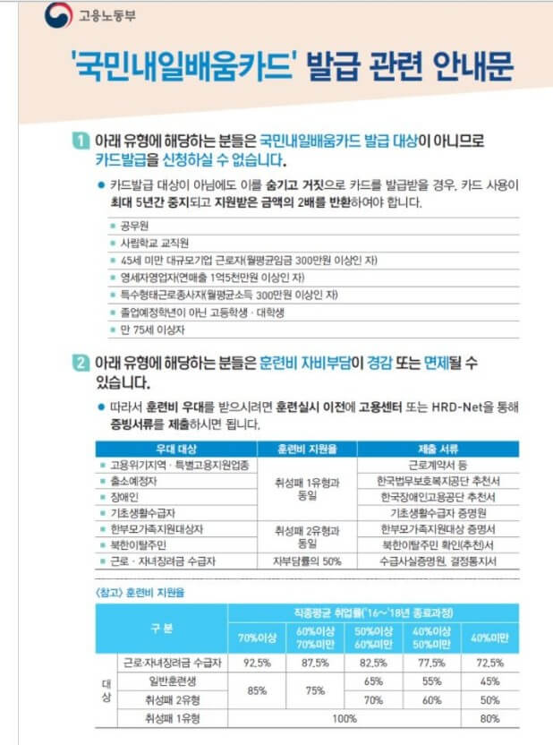 국민 내일배움카드 훈련비 지원금