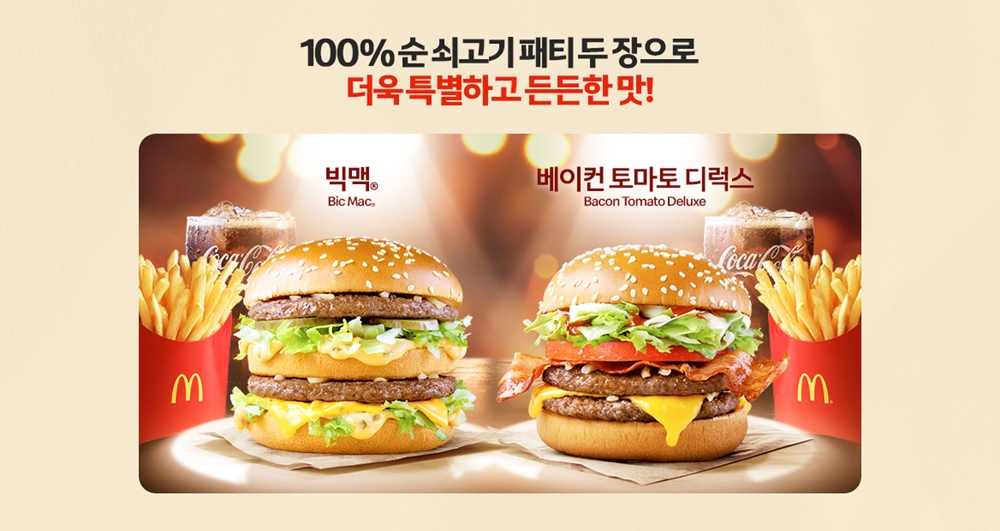 빅맥은 맥도날드의 대표적인 메뉴로, 그 특유의 소스와 순 쇠고기 패티, 신선한 야채가 어우러져 풍성하고 맛있는 식사를 제공합니다.