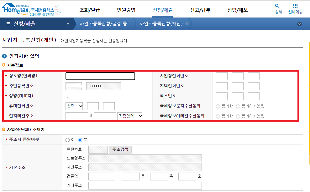 홈택스를 통한 사업자등록증 발급 방법