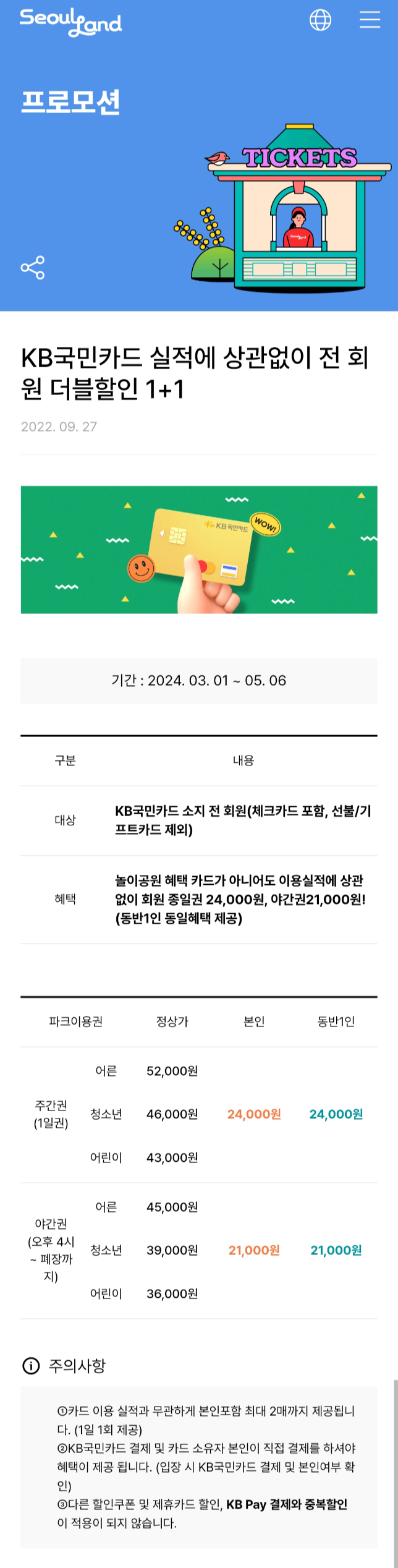 "서울랜드 자유이용권 할인 받는 방법"