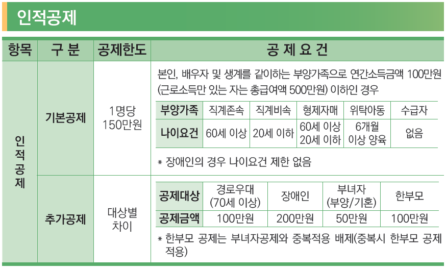 - 배우자의 종합소득금액이 100만원 이하여야 함