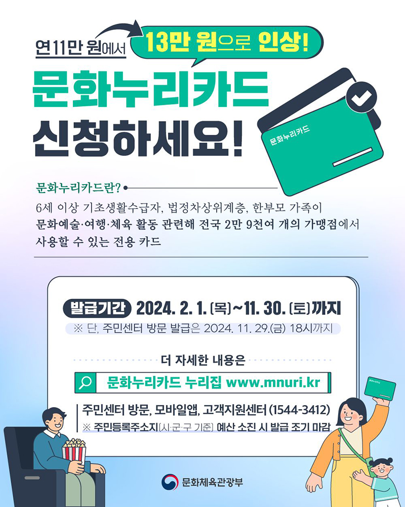 - 문화누리카드 지원