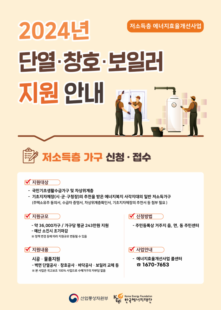 - 에너지 효율 개선 사업 (단열재, 바닥재, 배관공사 등)