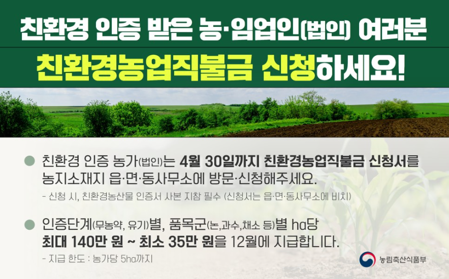 - 다른 직불금과 중복 수급은 불가능합니다.