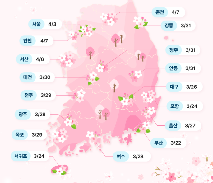 - 부산과 경남: 3월 24일경부터 순차적 개화