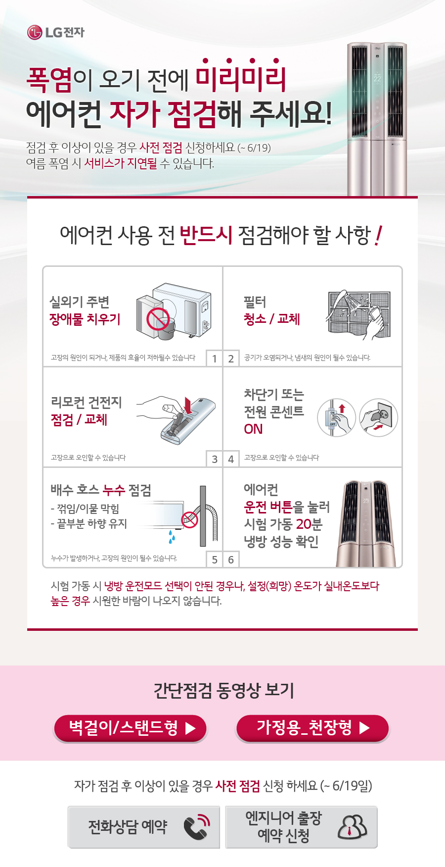 #LG전자 #휘센에어컨 #에어컨사전점검 #2025에어컨관리 #무료출장서비스 #에어컨청소 #스마트진단 #여름준비 #에어컨점검 #LG씽큐